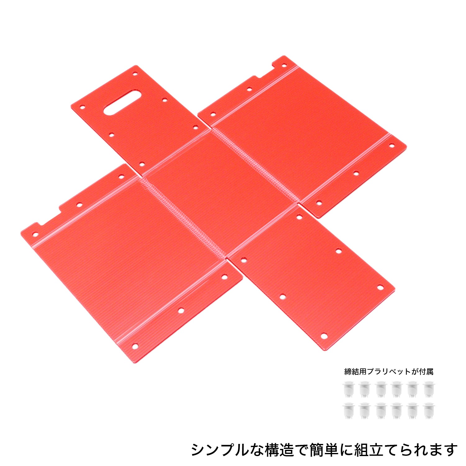 自分で組み立て!丈夫で軽量な収納ボックス。付属のプラリベットで止め、取手を付けるだけ!